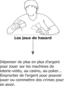La source de dépendance varie, mais le comportement est le même : la personne finit par être dominée par sa dépendance et par les conséquences nuisibles que cela entraîne dans sa vie.